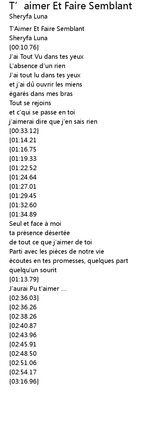 | [02:58.77][02:38.26] | t'aimer et faire semblant |