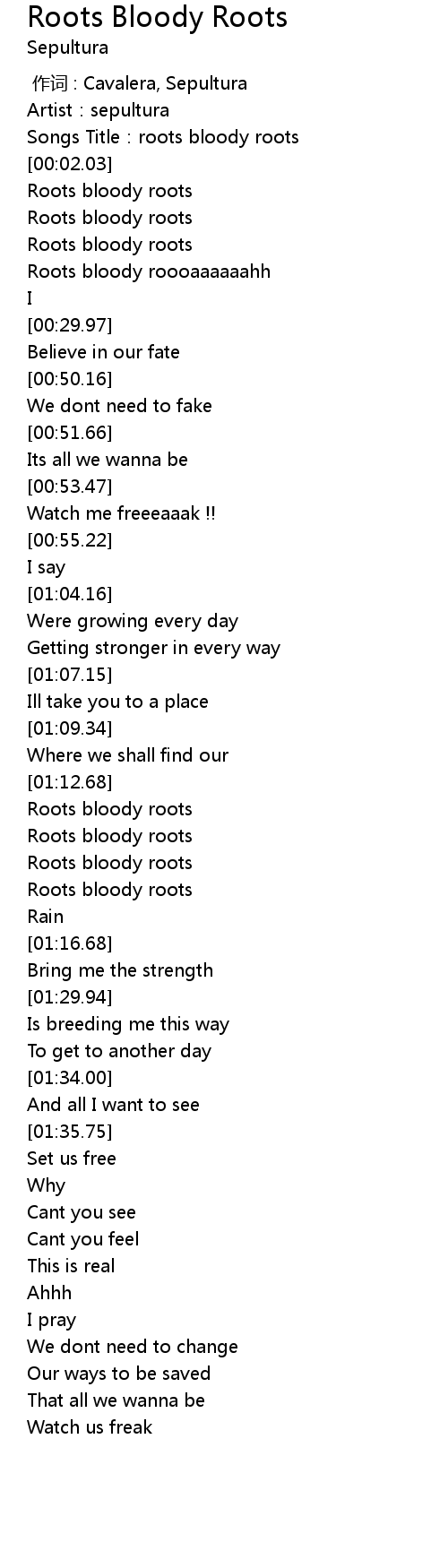 | [00:00.00] | 作词 : Cavalera, Sepultura |