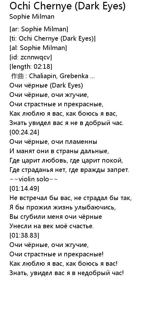 | [01:39.13] | Очи чёрные, очи жгучие, |