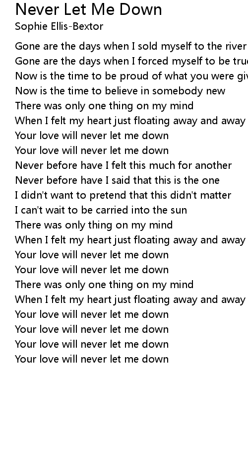 Your love will never let me down |