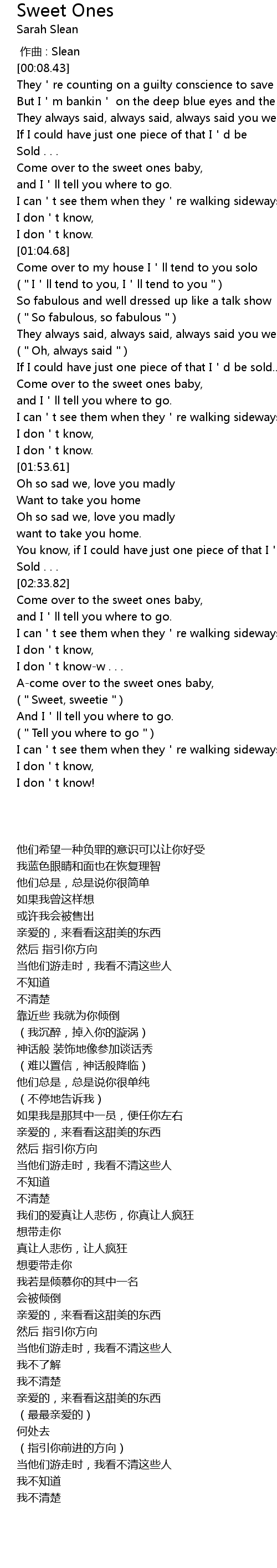 | [02:51.45] | A-come over to the sweet ones baby, |