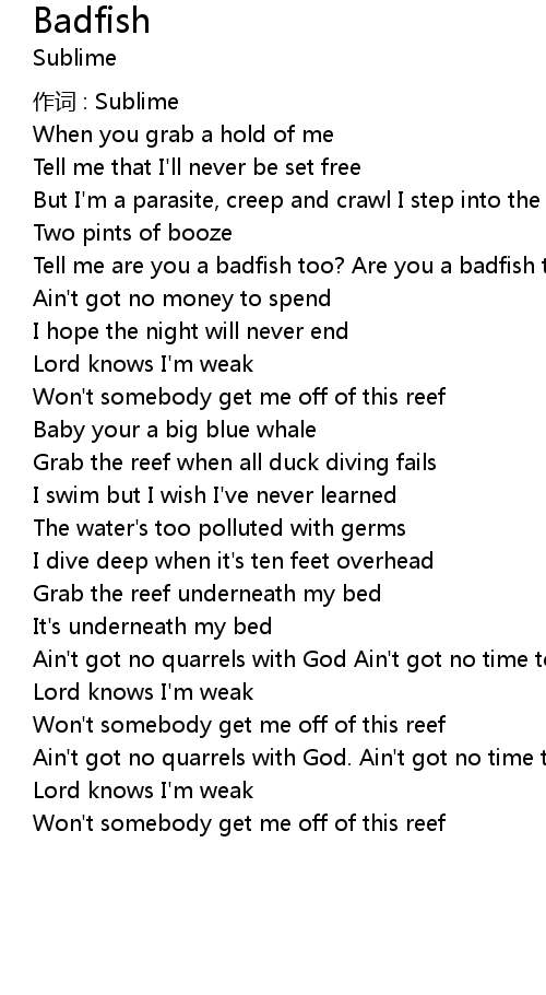 | Tell me are you a badfish too? Are you a badfish too? | |