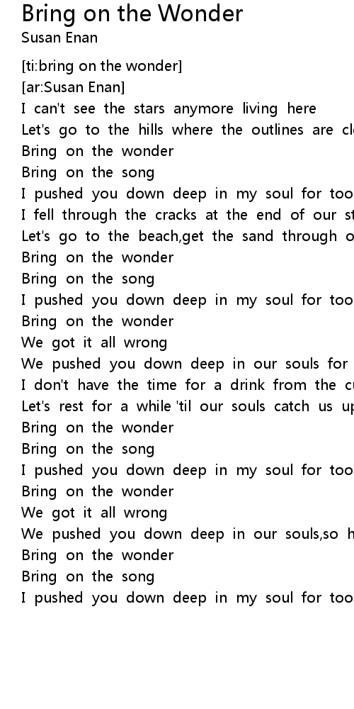 [ti:bring on the wonder] |