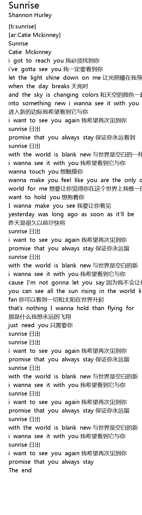 | [00:25.431] | sunrise 日出 |