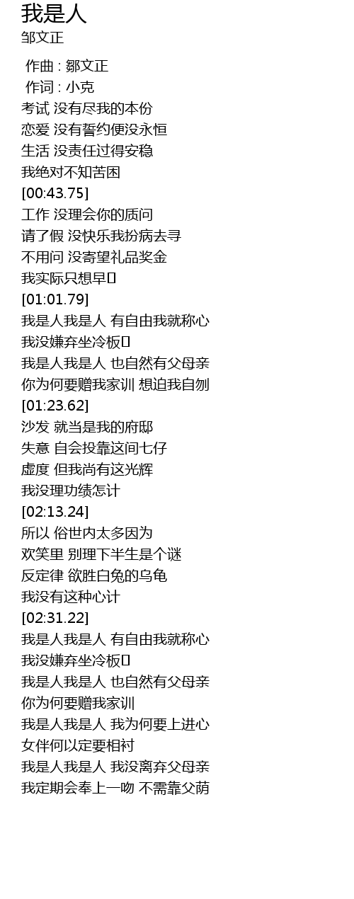 | [02:32.34] | 我是人我是人 有自由我就称心 |