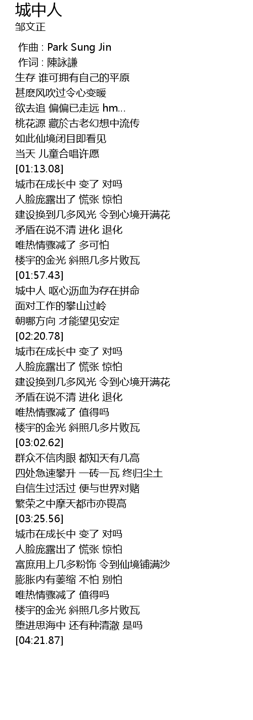 | [01:13.61] | 城市在成长中 变了 对吗 |