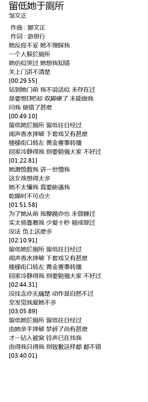 | [03:06.37] | 留低她於厕所 留低往日经过 |