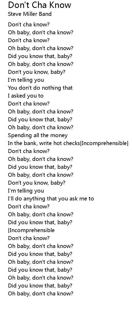 Don't you know, baby? |