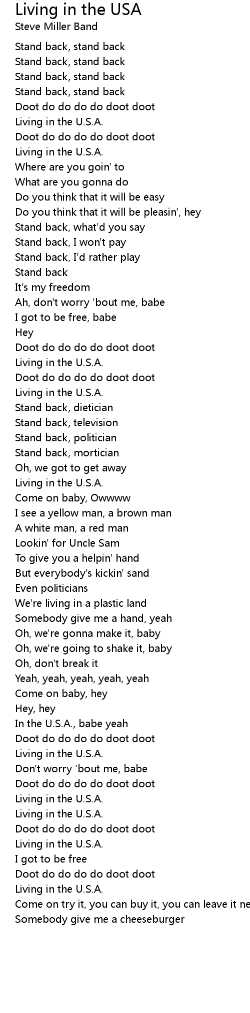 Living in the USA Lyrics