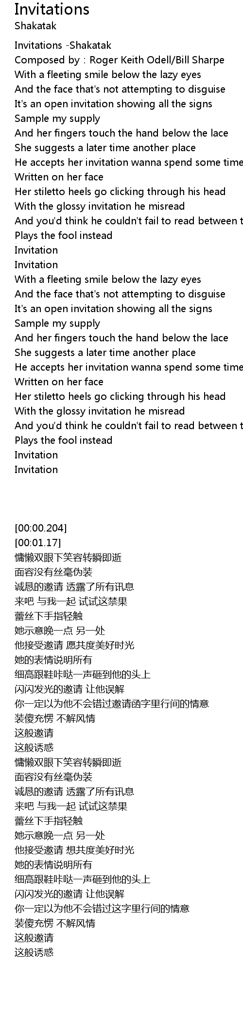 | [00:00.204] | Invitations -Shakatak |