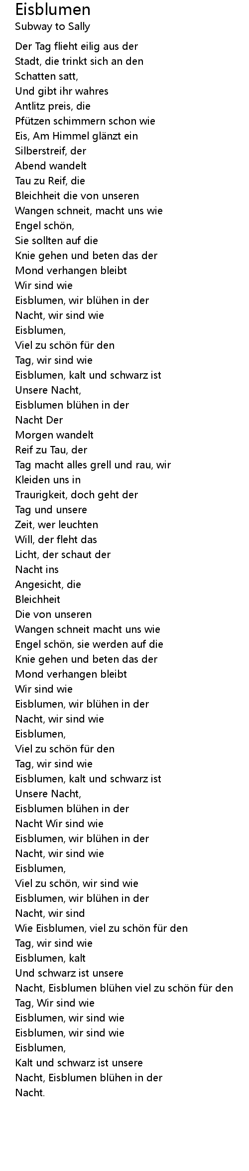 | Nacht, Eisblumen blü hen viel zu sch n fü r den | |