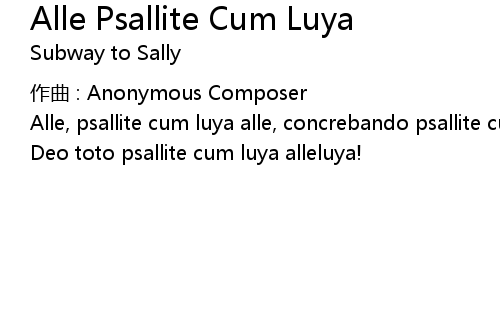 | Alle, psallite cum luya alle, concrebando psallite cum luya alle, corde voto | |