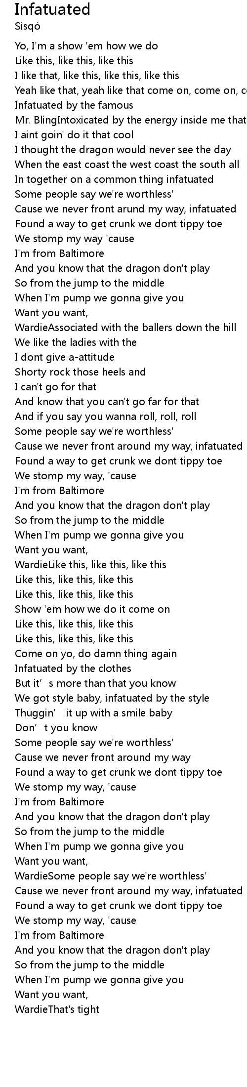 | Cause we never front arund my way, infatuated | |