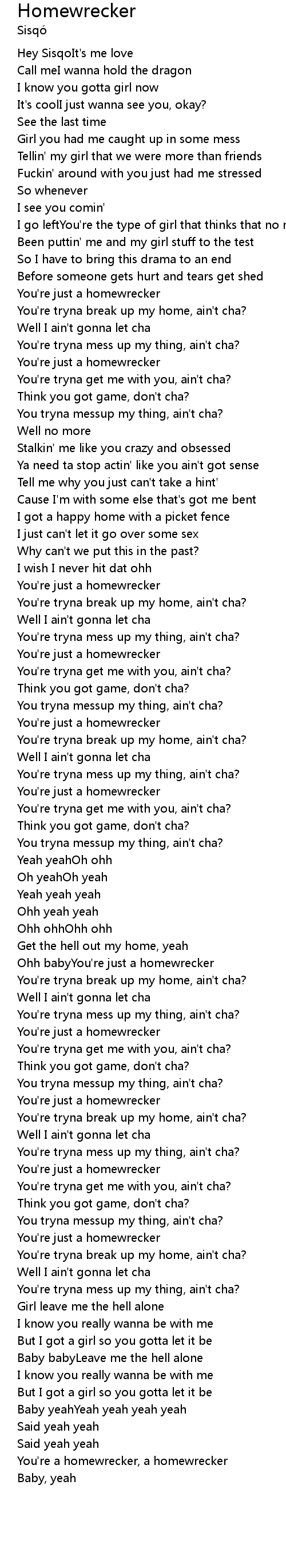 Ohh babyYou're just a homewrecker |