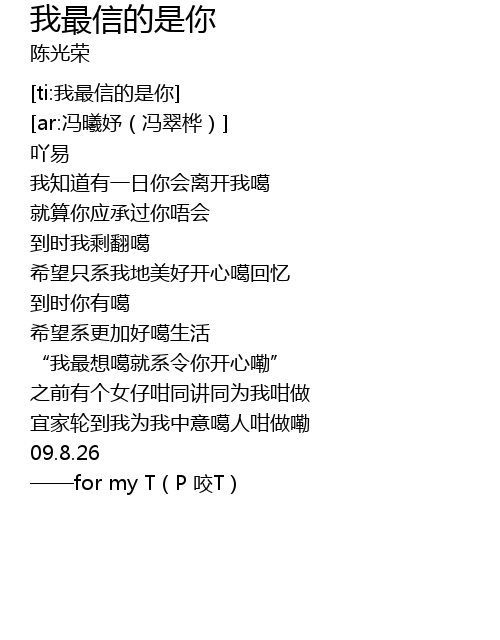 | [00:39.329] | “我最想噶就系令你开心嘞” |
