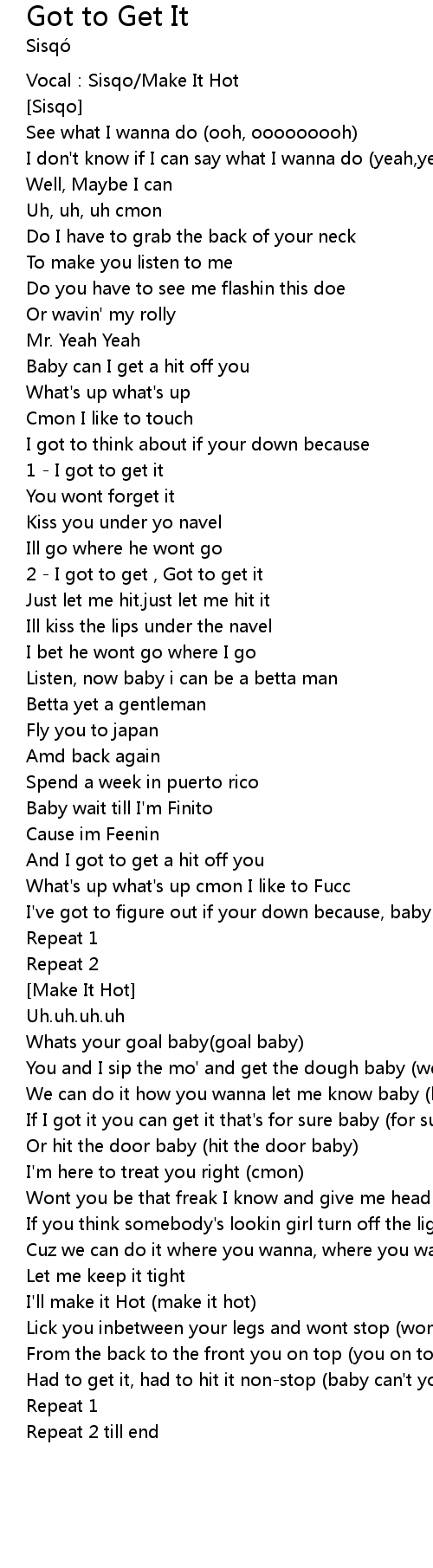 | 2 I got to get , Got to get it | |