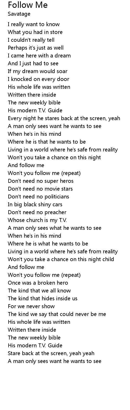 Won't you follow me (repeat) |