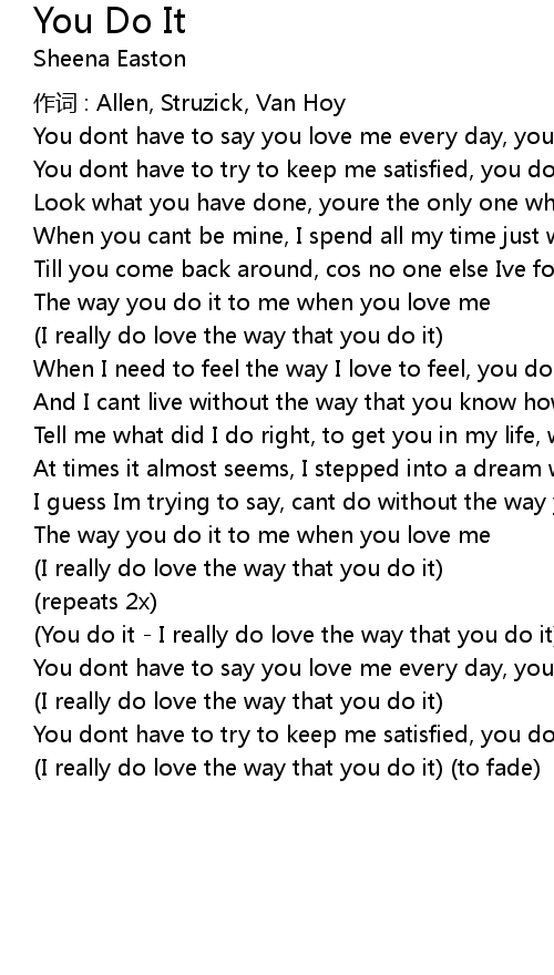 | You dont have to try to keep me satisfied, you do it, yes you do | |