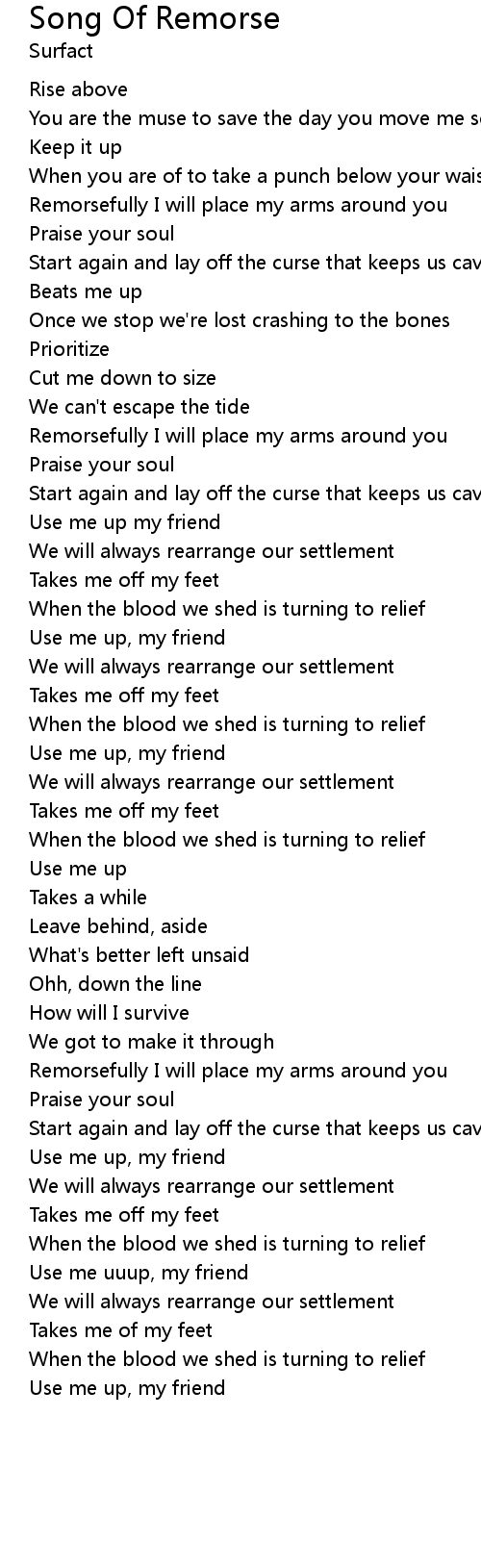 | Remorsefully I will place my arms around you | |
