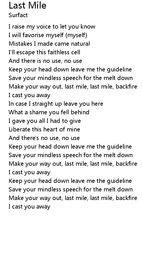 | Make your way out, last mile, last mile, backfire | |