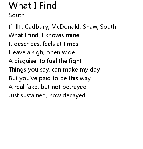 | Song | What I Find |