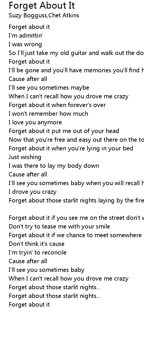 I can't remember when it felt so right so just forget about it [ guitar ] |