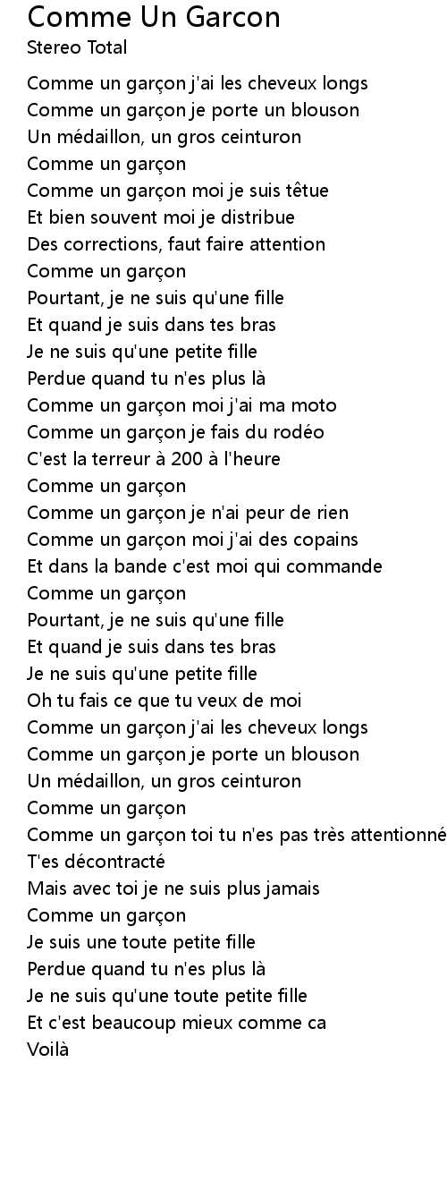 | Comme un gar on j' ai les cheveux longs | |