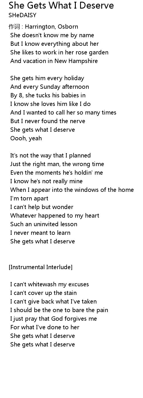 | She gets what I deserve |
