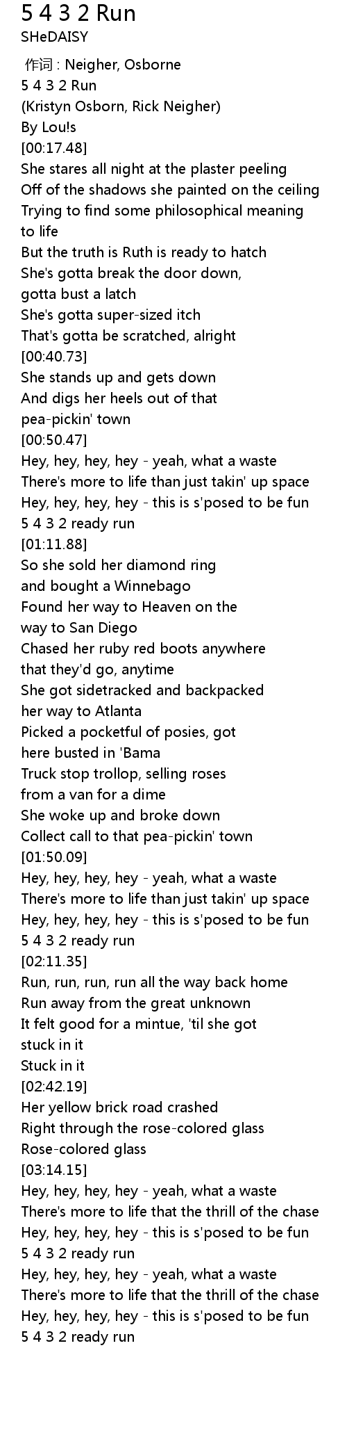 | [00:00.00] | 作词 : Neigher, Osborne |