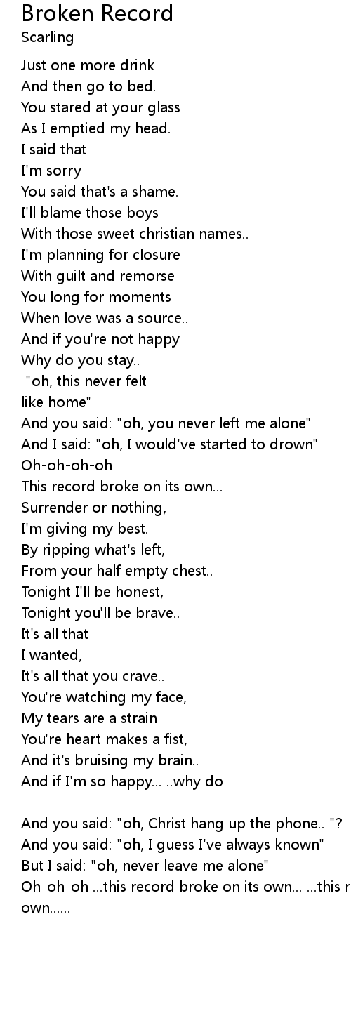 Oh-oh-oh ...this record broke on its own... ...this record breaks on its own...... |