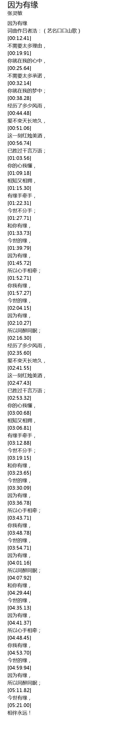 | [00:04.74] | 因为有缘 |