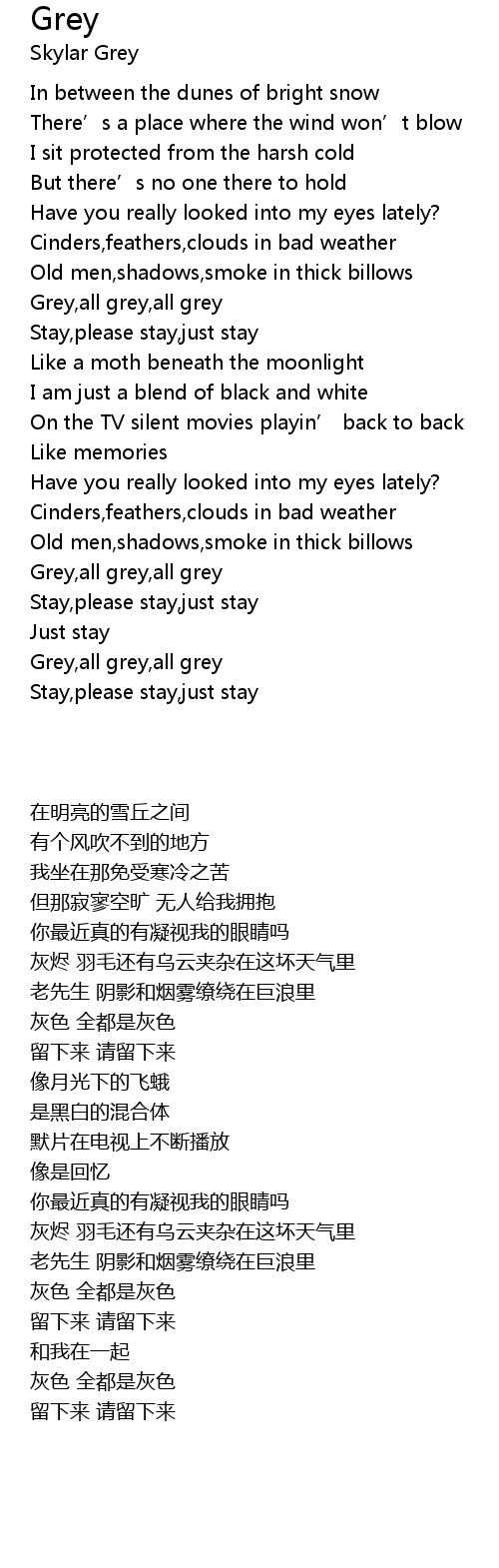 | [03:29.350] | Grey,all grey,all grey |