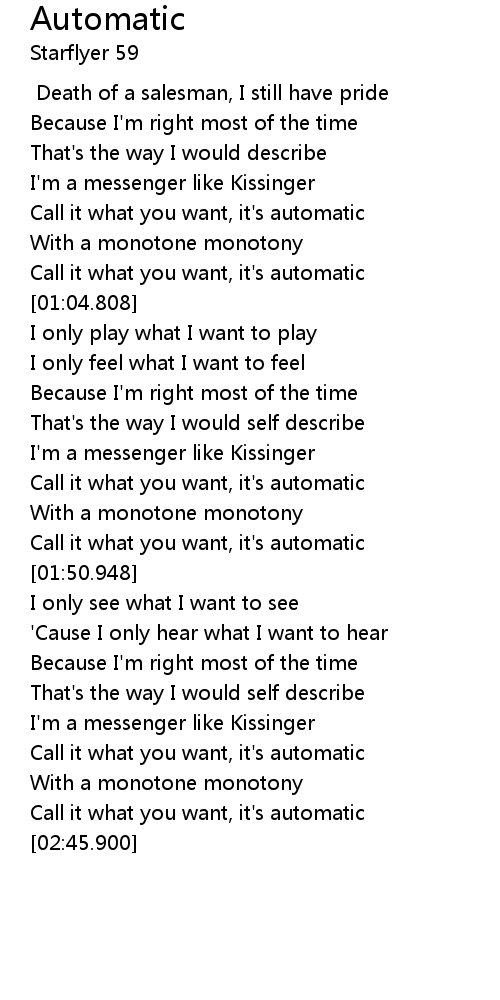 | [01:45.648] | Call it what you want, it' s automatic |