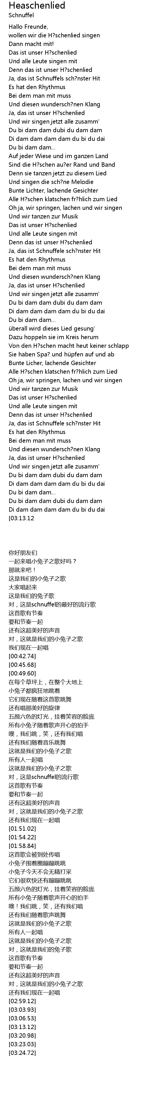 | [02:42.28] | Ja, das ist Schnuffele sch? nster Hit |