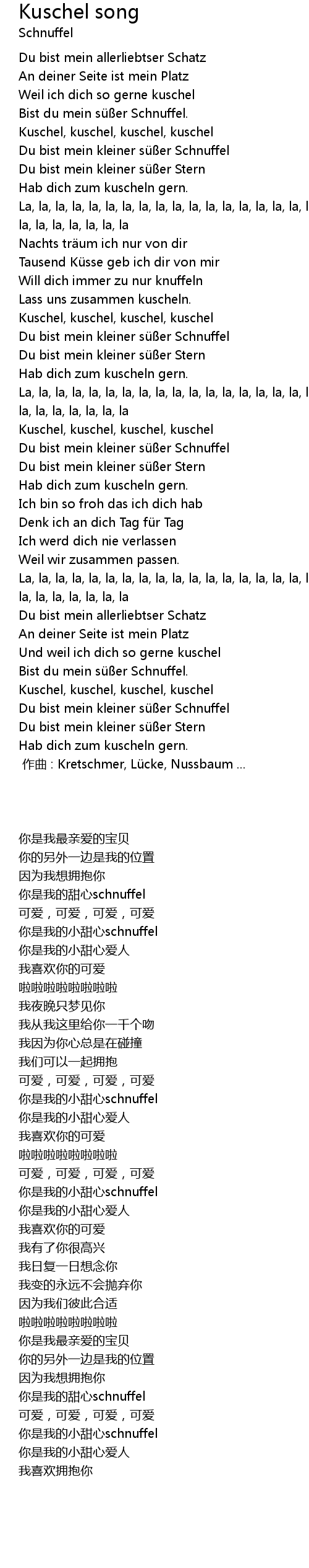 | [00:33] | Du bist mein kleiner sü er Schnuffel |