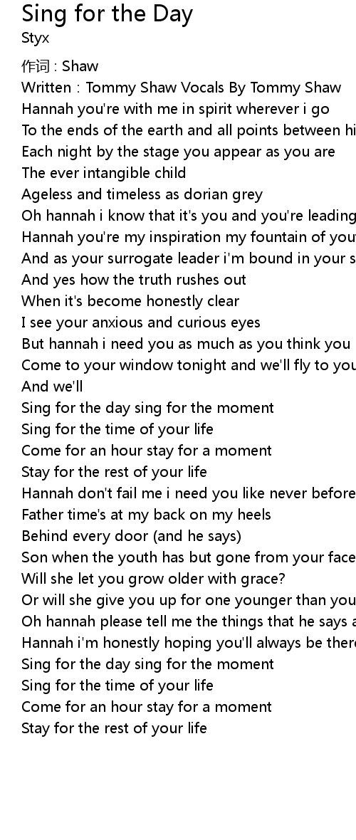 | Sing for the day sing for the moment | |
