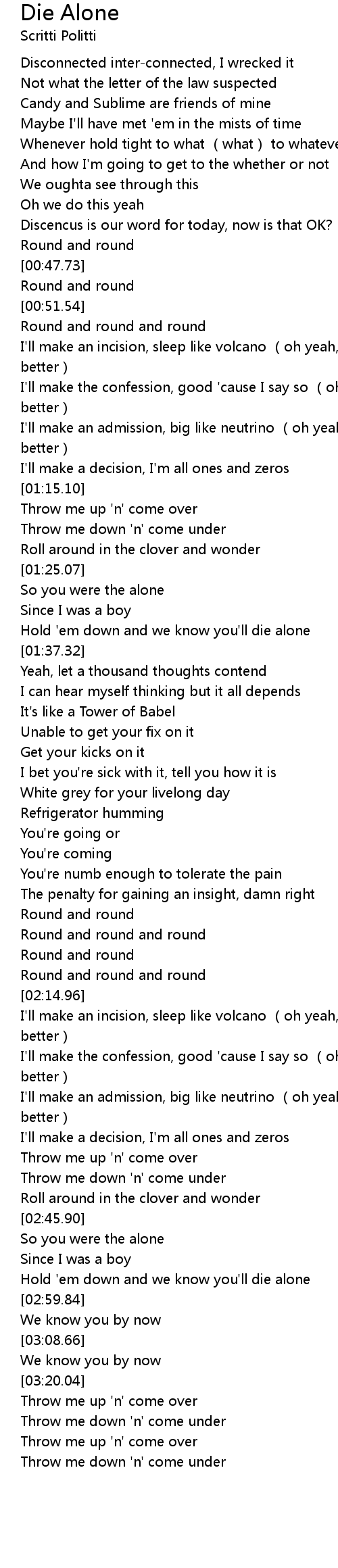 | [01:32.00] | Hold 'em down and we know you'll die alone |