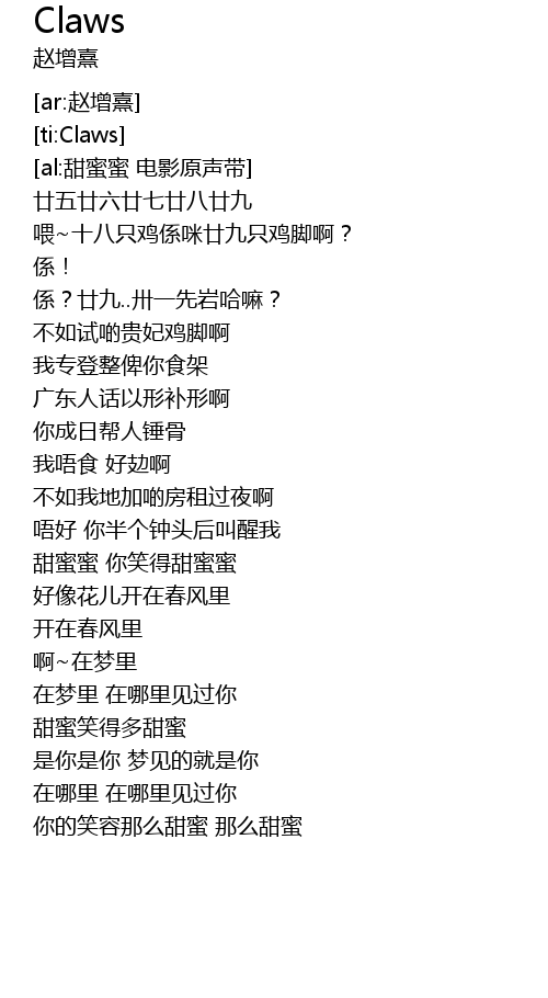 | [00:58.72] | tian mi mi ni xiao de tian mi mi |