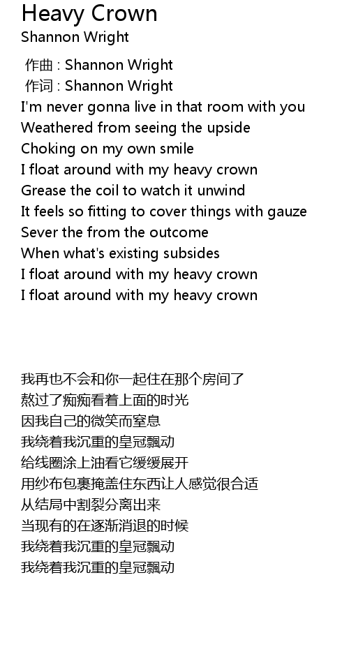 | [00:30.96] | I float around with my heavy crown |