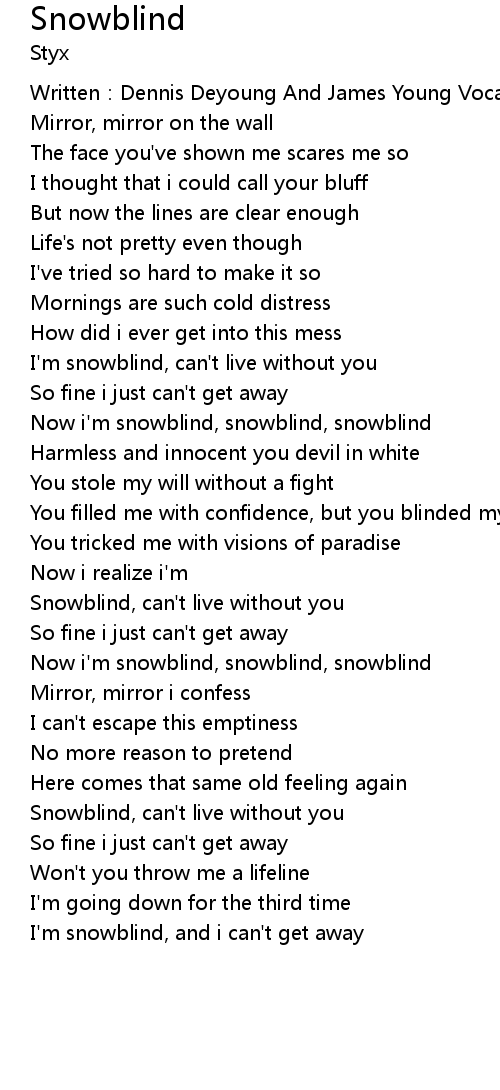 | Snowblind, can't live without you | |