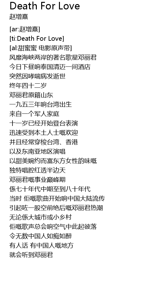 | [00:11.18] | 邓丽君原籍山东 |