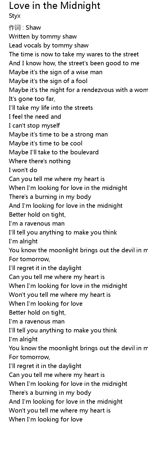 | And I' m looking for love in the midnight | |
