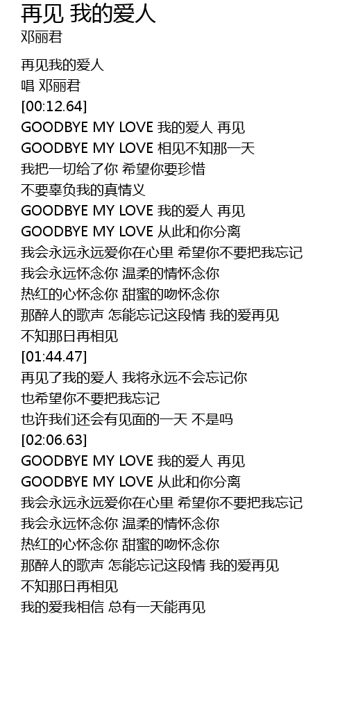 | [02:08.25] | GOODBYE MY LOVE 我的爱人 再见 |