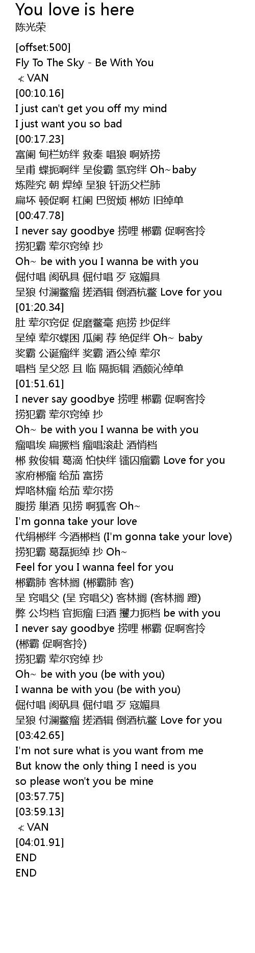 | [03:32.64] | cheng lang fu lan bie liu cuo jiu ji dao jiu hang bie Love for you |