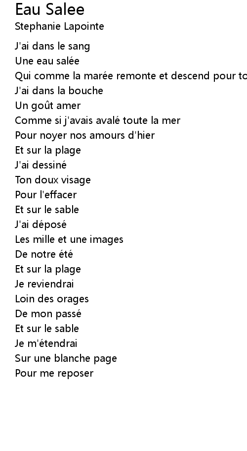 | [00:17.96] | Comme si j' avais avalé toute la mer |