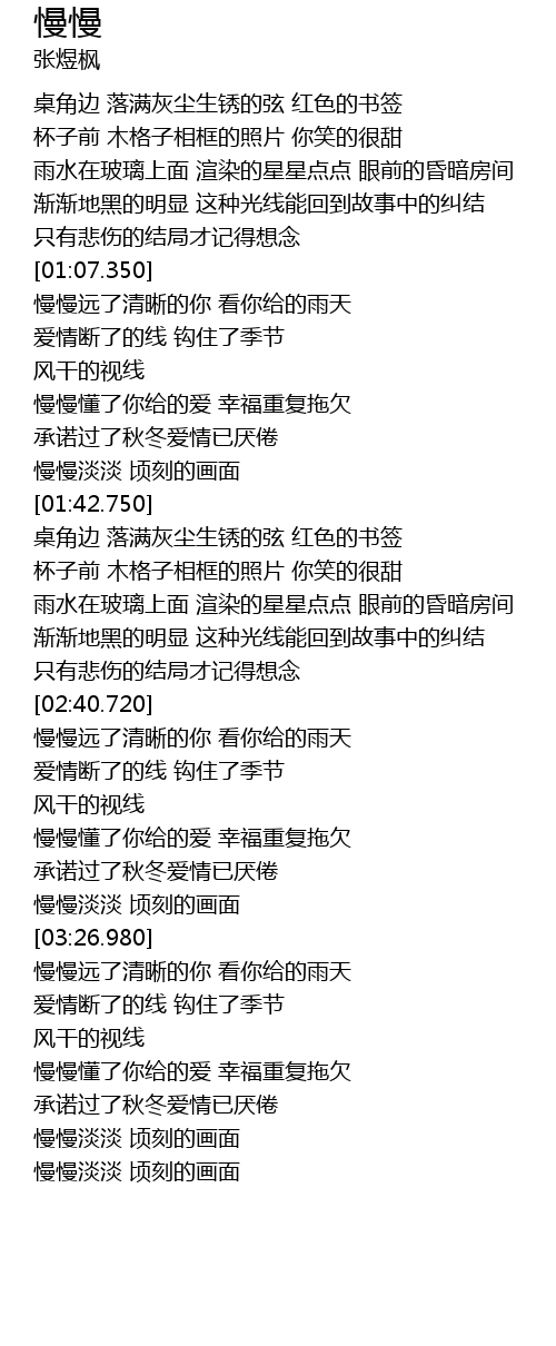 | [01:34.160] | man man dan dan qing ke de hua mian |