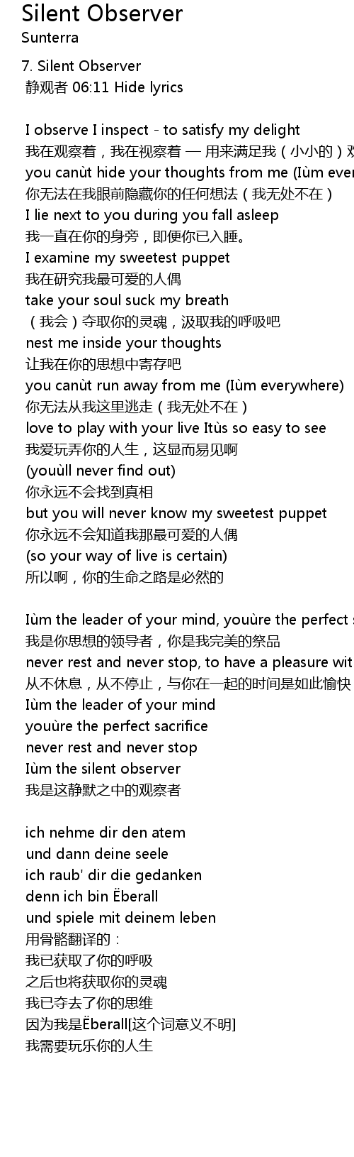 | 静观者 06:11 Hide lyrics | |