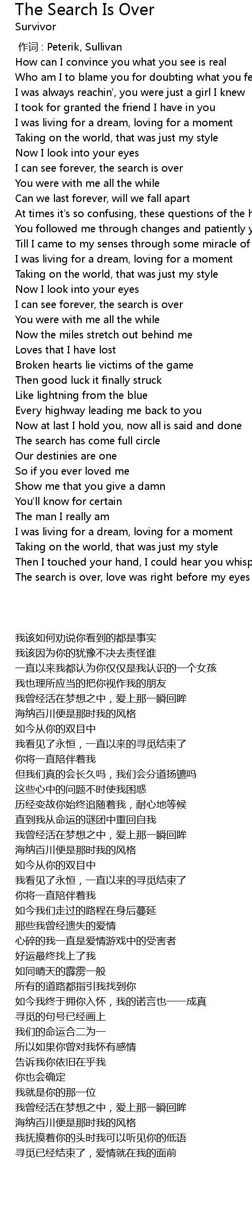 | [00:58.96] | I can see forever, the search is over |