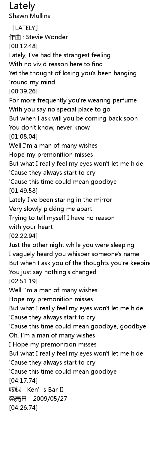 | [00:01.48] | LATELY |