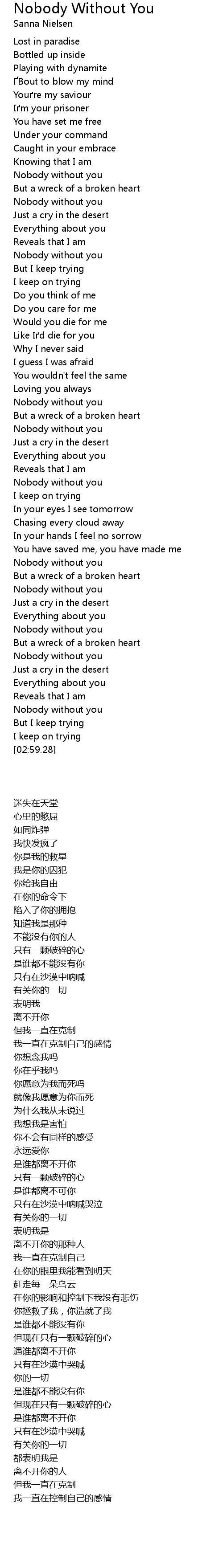 | [01:00.17] | Nobody without you |